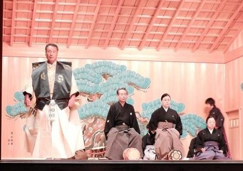 10月の「能楽秋の会」では、能の実演は行わず、素謡(謡のみの実演)と仕舞(能のクライマックスや最後の部分の舞を、面や装束を着けないで実演するもの。謡がつきます。)、舞囃子(仕舞に囃子がついたもの)を行いました。